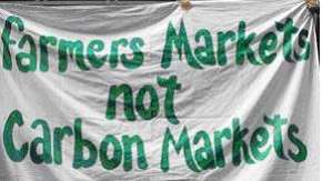 Farmer's Markets not Carbon Markets - campers setting up a stall selling fresh, locally (yes, London) produced goods (Amelia Gregory)