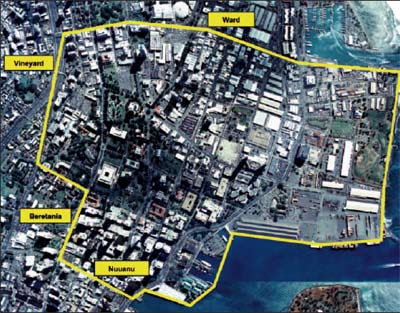 | The downtown area to be connected to the seawater air conditioning system, courtesy of Honolulu Seawater Air Conditioning LLC |