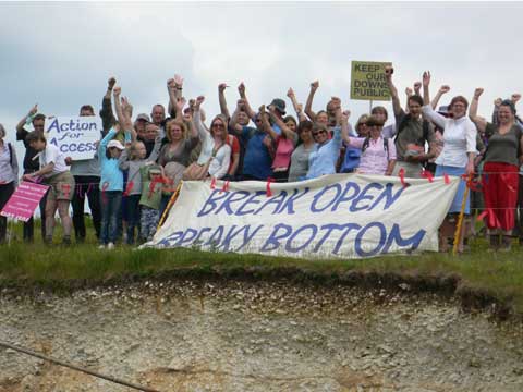 'All that's needed is 70 metres of fencing,' says A4A's founder, Dave Bangs. 'But this selfish landowner is using the quarry as an excuse to exclude us from his grounds. The irony is, he's enclosed every other vine row, paddock or field on the site, making this the most fenced farm on the South Downs. Natural England should have refused the restriction order, and Lewes District Council should be enforcing his duty to install a safety barrier. So today we've symbolically fenced off the pit ourselves, to show the farmer and these two bodies that our exclusion from this delightful piece of ancient Downland won't go unchallenged.'