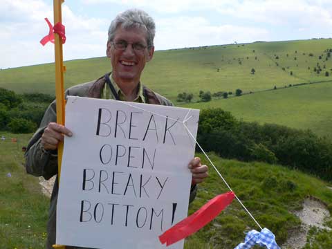 Determined to defend their right to enjoy the countryside, they have 'trespassed' onto the slope facing Breaky Bottom Vineyard in East Sussex, which, despite acquiring statutory Access Land status in 2000 under the Countryside Rights of Way (CRoW) Act and its attached Right to Roam, is currently out-of-bounds to the public due to the landowner's claim that a small, disused chalk-pit constitutes a safety hazard.
