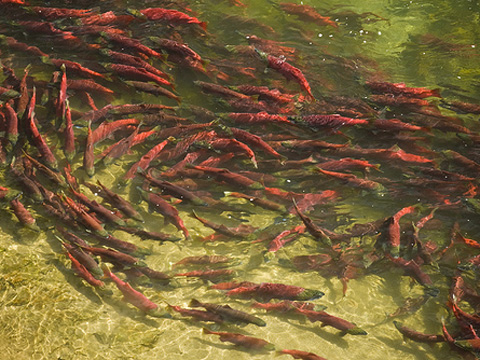 Sockeye salmon on the Funnel in Katmai National Park, Alaska (Photo by Ben Knight)