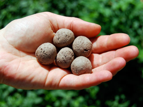 The compost and clay act as a carrier for the seeds so they can be launched over walls or
