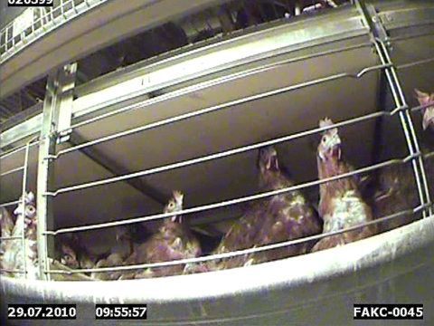 Some British companies have already made the switch to ‘enriched’ cages ahead of 2012. One of these is Noble Foods. They produce around 60 million eggs a week and boast a £2bn turnover. In July last year, Viva! secretly filmed at a Noble Foods establishment (see video above) - probably the largest ‘enriched’ cage unit in Britain. One vast shed alone holds around 125,000 hens.