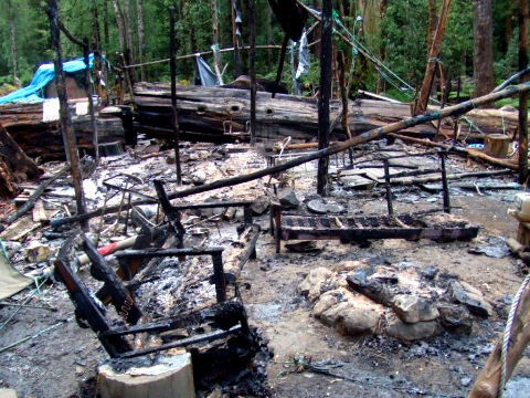 Four years ago (2008) arsonists’ fire-bombed two cars and the information point. The violence followed days of attacks, blamed on pro-logging campaigners.