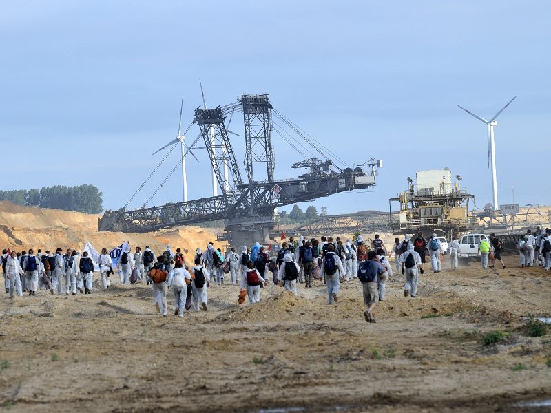 On 15th August 2015 climate protestors in Germany occupied and closed down a massive open pit coal mine in their 'Ende Gelände' action. Photo: Tim Wagner / 350.org via Flickr (CC BY).