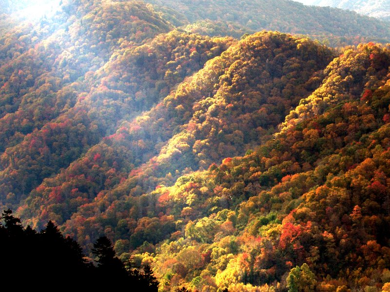 Morning Sun Beams on the Thomas Divide in North Carolina as seen from Newfound Gap in the Great Smoky Mountains National Park, where the Appalachian Trail crosses US 441. Photo: John Britt via Flickr (CC BY-NC-SA).