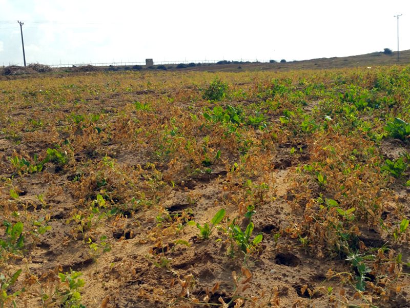 Crops affected include wheat, barley, zucchini, aubergine, fava beans, peas, green pepper, parsley, watermelon, cabbage, spinach and bitter vetch, grown as fodder for sheep. An area of 187 hectares of crops is reported as being destroyed or damaged.
