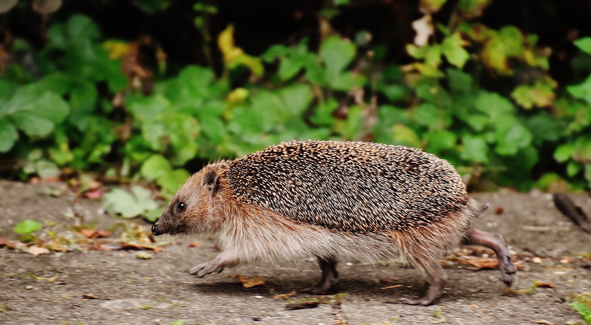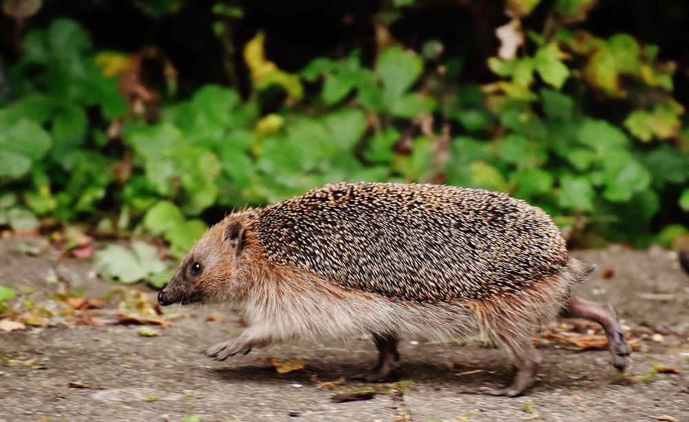 A hedgehog running through a garden, a site which is becoming less frequent in British gardens.