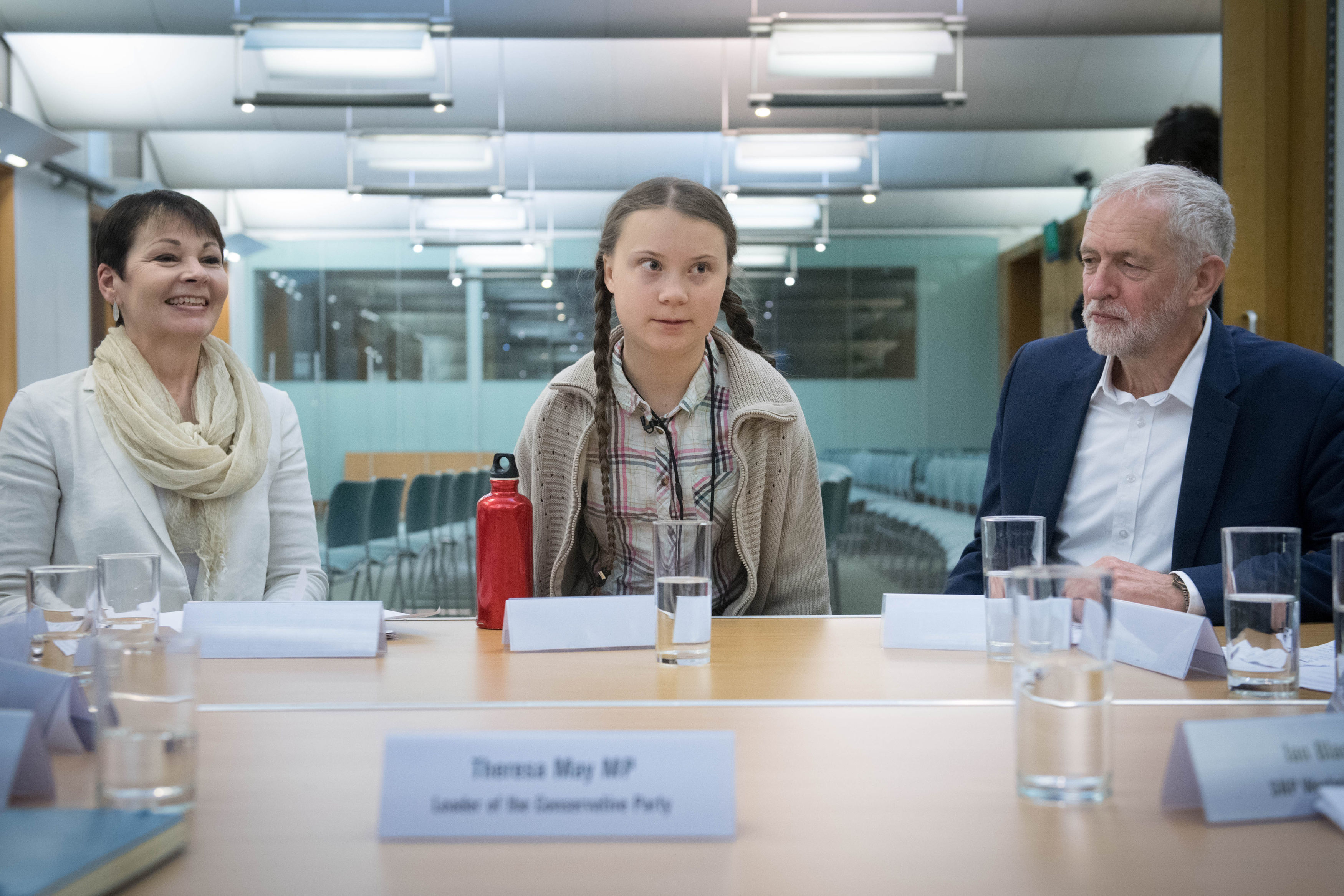 Before her speech, Miss Thunberg had held a roundtable with party leaders, where prime minister Theresa May was empty-chaired after she declined to attend.