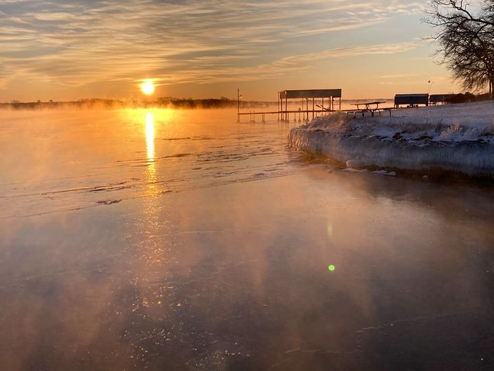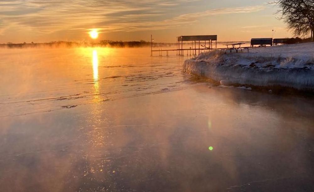 A frozen Eagle Mountain lake in Texas.