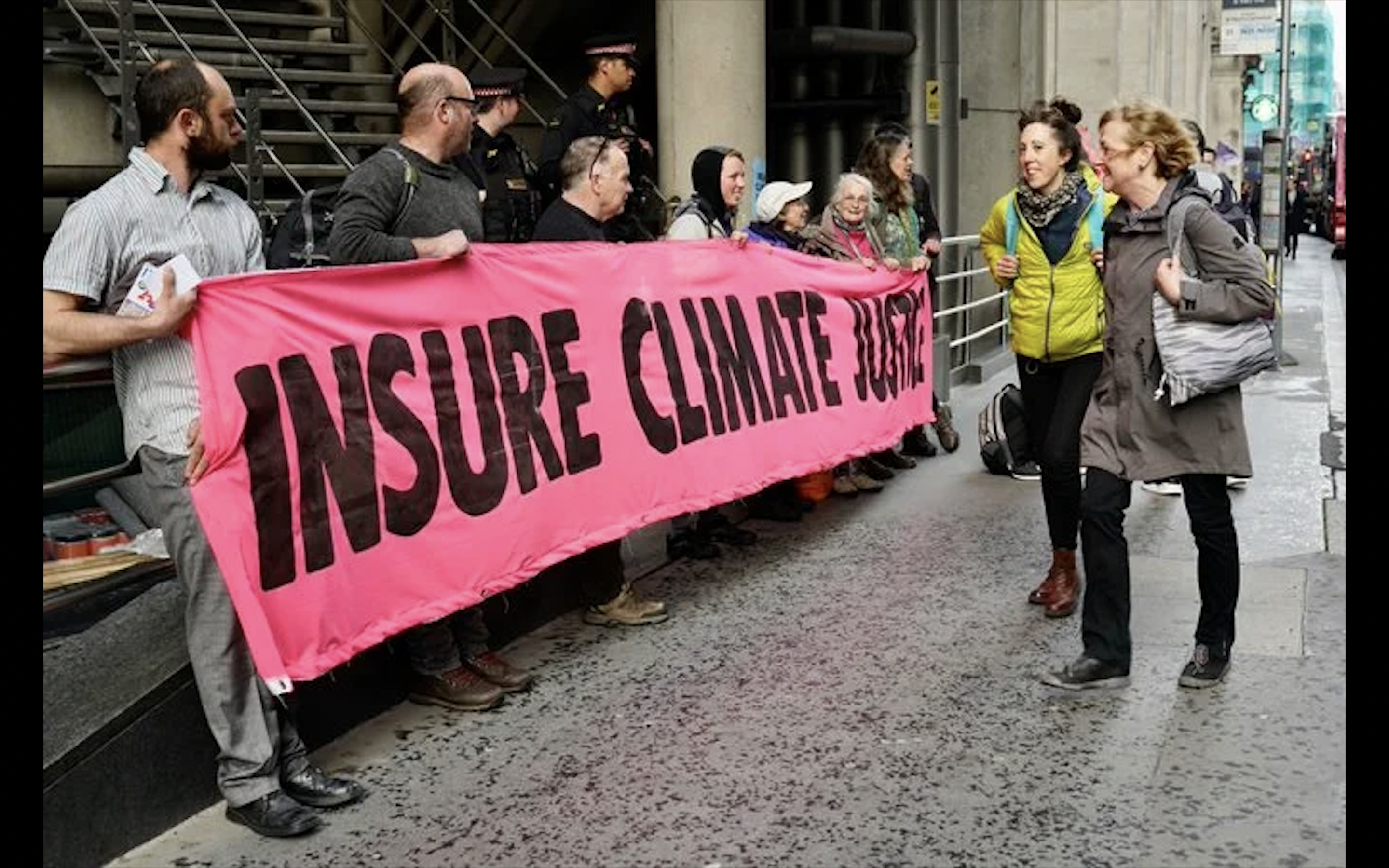 The climate campaigners are is demanding that Lloyd's of London stop insuring fossil fuels projects, and highlighted the Trans Mountain Pipeline extension in Canada, which they believe is being insured through the Lloyd's marketplace.